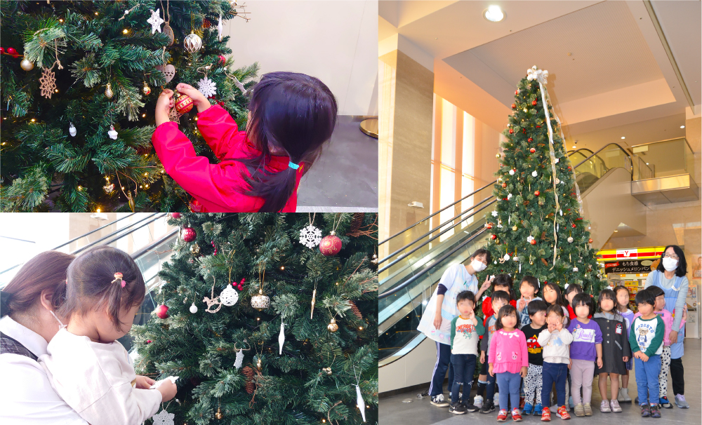 「赤いのはここがいいかな?」「星はお星さまの場所につける!」と、子供たちは小さな体で一生懸命、どれをどこに飾ろうか楽しそうに相談しながら飾り付けを行いました。
